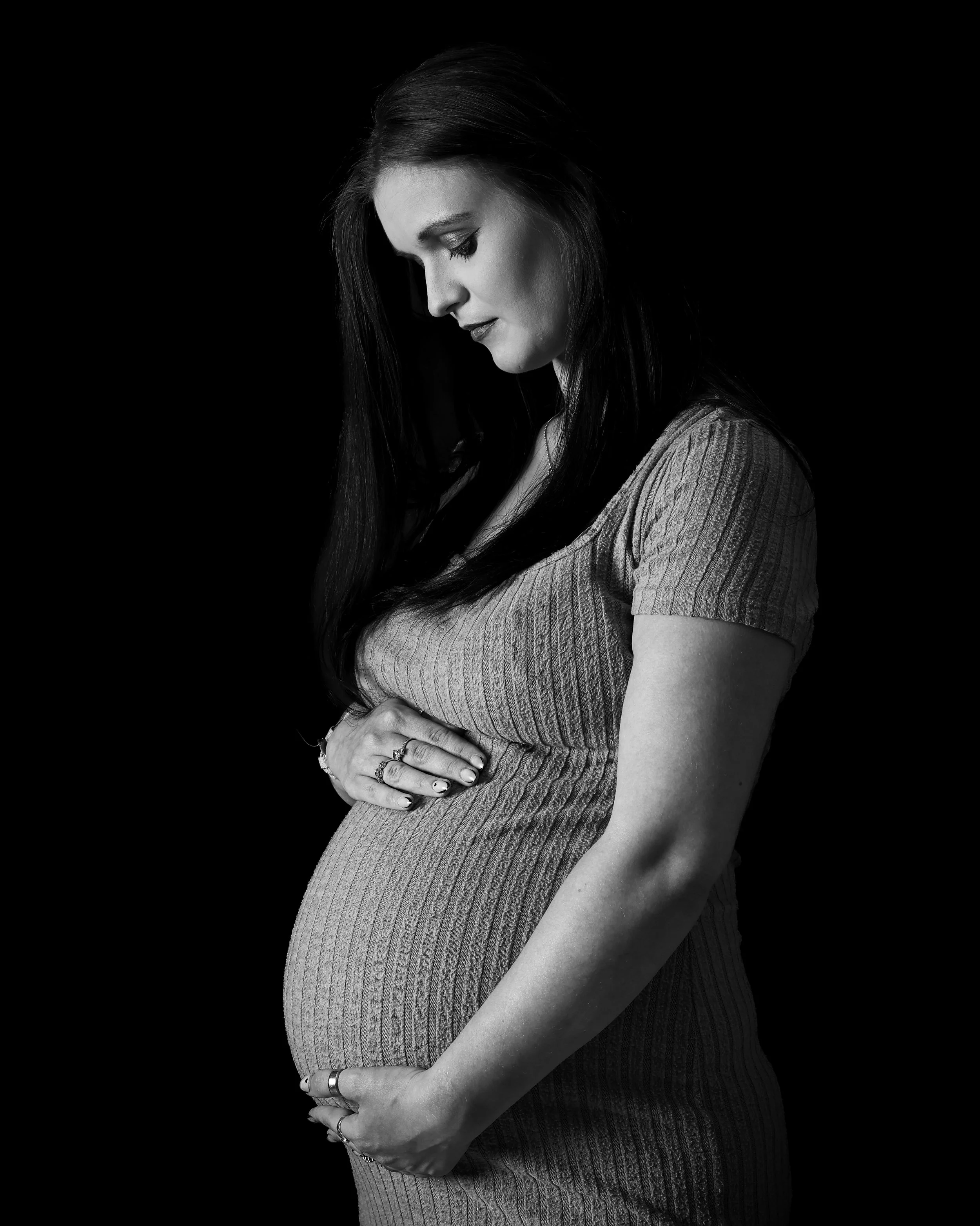 The image you see here represents our fine art approach to maternity photography. Shot against our signature black background with professional studio lighting, this isn't just documentation—it's art you'll proudly display in your home for decades.